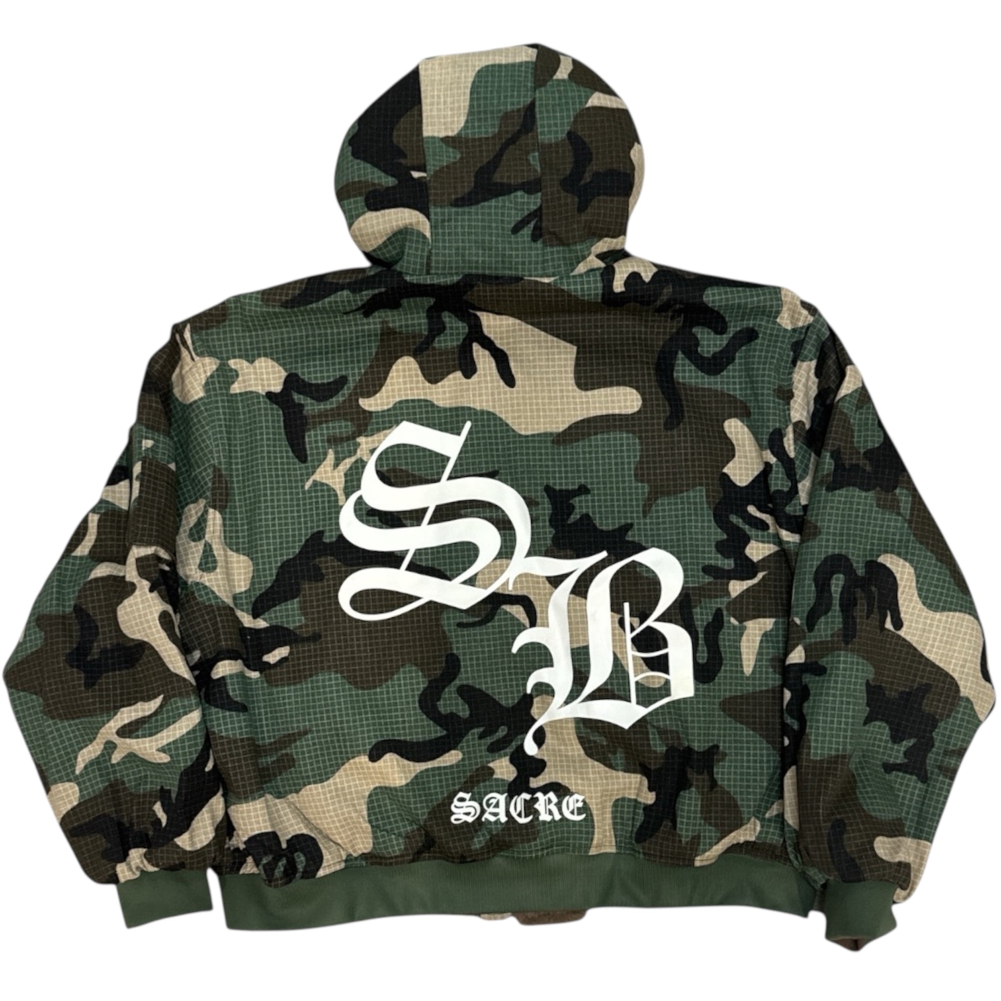- Back: Oversized SB monogram with SACRÉ branding